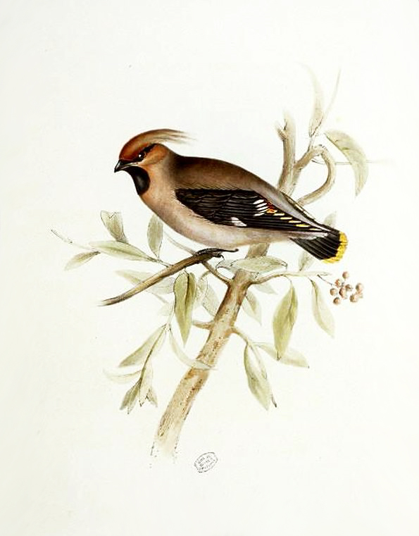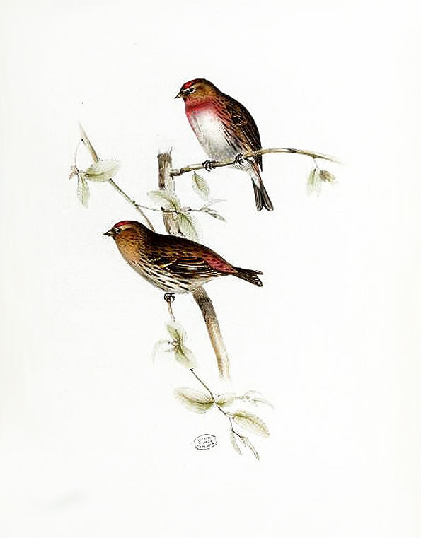 John Gould fut le plus prolifique et le plus prodigieux éditeur de livres sur les oiseaux du XIXième siècle. Il confiait à d'autres artistes l'exécution des lithographies, leur fournissant des spécimens, des esquisses préliminaires et des instructions précises. Les dessins étaient terminés sur une pierre lithographique et les grandes lithographies (env. 55 x 35 cm) coloriées à la main par ses employés. Les lithographies de son premier livre étaient l'oeuvre de sa femme Elizabeth, aidée par un jeune artiste et ornithologue autodidacte, Edward Lear. Cliquez sur les illustrations pour agrandir les images. On peut consulter le livre dans son intégralité sur GALLICA, la bibliothèque numérique de la BNF.