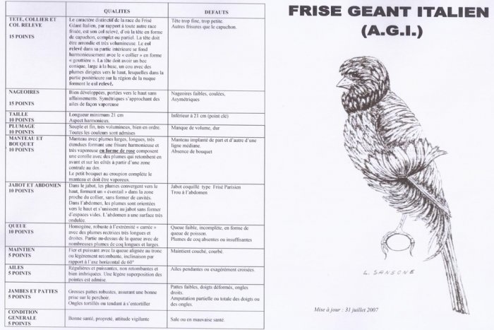 (1) Frisé Parisien - (2) Frisé géant Italien (AGI). - (3) Padovan LES FRISES LEGERS (4) Frisé du Nord - (5) Mehringer - (6) Fiorino LES FRISES LEGERS DE POSITION (7) Frisé du Sud - (8) Frisé Suisse - (9) Mélado tinerfeno - (10) Gibber Italicus - (11) Giboso Espagnol