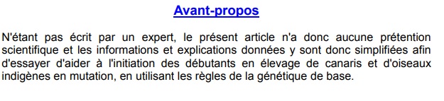 Quand j'ai lu cette petite remarque,au debut je n'y avais pas prete attention mais quand j'ai juste vu un petit echantillon de ce PDF alors j'ai vraiment rigolé car comment peut on ne pas etre un scientifique alors que l'on écrit 108 pages juste sur la genetique des oiseaux