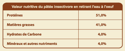 www.probiavi.com/canaris BIEN LIRE LES ETIQUETTES DU COMMERCE La plupart des étiquettes que l’on retrouve sur le marché décrivent la valeur nutritive du produit acheté. On y retrouve entre autres la quantité minimale de protéines d’hydrate de carbone, de fibres et autre composés de la nourriture. La notion de base que l’on doit maîtriser afin de bien comprendre ces indications est la quantité d’eau contenue dans l’emballage. Les mélanges commerciaux peuvent sembler complètement secs, mais la valeur en eau se situe bien des fois entre 16 et 20%. L’analyse des fruits et des légumes nous prouve que ceux-ci sont constitués principalement d’eau (entre 80 et 95%), ce qui veut dire qu’il ne reste que 5% de leurs contenus qui possède des nutriments ! Évidemment, l’eau est nécessaire à la vie. La vie peut exister sans air, sans lumière mais pas sans eau. L'eau sert à trois choses chez l’être vivant. * Premièrement, l’eau maintient toutes les cellules du corps en santé, flexible et en bon état de fonctionnement. * Deuxièmement, l’eau transporte, avec le sang, les nutriments nécessaires à l’existence. * Troisièmement, l’eau sert de diluant afin d’éliminer les rejets du corps sous forme d’excréments. Il n’y a pas de calorie dans l’eau et l’eau n’a aucune valeur nutritive. Bien sûr les substances qui se dissolvent dans l’eau comme les sucres, les vitamines et les minéraux sont des nutriments, mais l’eau n’en est pas. Quand vous regardez un contenant, notez premièrement la quantité d’eau. Plus le niveau est élevé, moins il est riche en nutriments. La laitue avec 95% d’eau ne contient que 5% d’éléments nutritifs et ceux-ci sont composés presque uniquement d’hydrate de carbone. Par contraste, une graine de tournesol possède 95% de nutriments. Si chacun de ces items coûtait 1.50E le kilo, la valeur des éléments nutritifs pour la graine de tournesol serait de 1.85E le kilo tandis que la laitue serait de 30.00E le kilo! Tout ça à cause de l’eau. Regardons ensemble les informations retrouvées sur une étiquette de nourriture pour élevage vendue dans le commerce. Un autre dit « pâtée insectivore » indique ceci : Donc 46% d’eau. Par expérience, nous savons que l’œuf est une excellente pâtée d’élevage. Par contre, l’œuf contient beaucoup d’eau et à première vue on peut se demander comment 24.5% de valeur nutritive et 12.5% de protéines peuvent bien faire pour combler les besoins de nos oisillons. Rappelons-nous que l’eau n’a aucune valeur nutritive, mais qu’elle est essentielle au transport des nutriments et à l’élimination des toxines. Après avoir enlevé le contenu de l’eau à l’œuf, sa valeur nutritive nous apparaît bien différente. (L’analyse suivante ne reflète pas les qualités en matière de vitamines, car ceux-ci sont toujours présents en petite quantité dans la nourriture soit moins de .5%.) Ce 51% de protéines sont des protéines complètes, c’est ce qui donne le « Boost » et la rapidité de croissance incroyable aux oisillons qui en sont nourris. Certains auteurs affirment que si les petits des tourterelles diamant sont nourris de cette mixture, ils quitteront le nid complètement emplumés et capables de voler 11 jours après l’éclosion. Cette rapidité de croissance se retrouve uniquement chez certains astrilds qui sont nourris aux insectes vivants ! Les insectes sont extrêmement riches en protéines (plus de 70%). C’est la raison pour laquelle les petits des espèces indigènes ou exotiques qui sont nourris aux insectes grandissent si rapidement. Les vers de sang (Buffalo) sont très riches en protéines (plus de 61%) mais ceux-ci contiennent plus de 93% d’eau. Par contre, le 7% qui restent est constitué presque exclusivement de protéines. À la lumière de tous ces faits, nous pouvons conclure que le poids sec (sans l’eau) de toute nourriture d’élevage doit être le plus près possible de la quantité de protéines que l’on retrouve dans l’œuf. Les protéines doivent avoir le plus haut pourcentage suivi par les matières grasses, les minéraux et les hydrates de carbone doivent se retrouver au dernier rang et en bas pourcentage pour toute nourriture que l’on considère comme nourriture d’élevage. La période d’élevage nécessite une prédominance en nourriture riche en protéines. Une pâtée qui contient plus de 20% en sucre, en fécule ou en sous produits de boulangerie ne devrait pas faire partie d’un élevage moderne. Une nourriture qui a prédominance en hydrate de carbone sera désastreuse pour l’élevage. Les petits, s’ils ne meurent pas au nid, seront mal emplumés et faibles. Les hydrates de carbone ne sont pas nécessaires pour les jeunes au nid, s’ils sont administrés en excès pendant cette période, elles créeront des dommages permanents aux oisillons www.probiavi.com/canaris