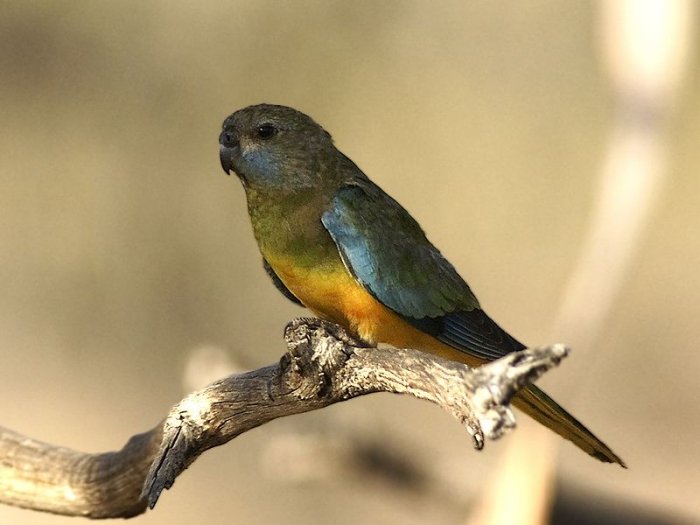 Aire de distribution :Depuis l'ouest de la Nouvelle-Galles du Sud via le nord de l'Australie Méridionale à travers le désert Nullarbor jusqu'au centre de l'Australie Occidentale. Neophema splendida mâle Cliché : "Wikipédia" La Perruche splendide est un habitant typique de l'intérieur, elle fuit le voisinage des côtes et s'éloigne souvent très loin de toute réserve d'eau. Elle est proche parente de la Perruche turquoisine et remplace cette espèce dans le sud et le sud-ouest de l'Australie. Ce n'est que dans le sud-ouest quelle semble avoir fort augmenté en nombre récemment. Elle y a vécu un sort analogue à celui de la Perruche turquoisine dans l'est du continent. La Perruche splendide habite les collines couvertes d'eucalyptus, contrairement aux autres euphèmes, elle est très casanière et ne quitte son territoire que lorsqu'elle y est contrainte par la pénurie d'eau ou de nourriture. Tous les observateurs ont mis l'accent sur son extraordinaire familiarité vis-à-vis des êtres humains. Femelle Neophema splendida immature David Cook Wildlife Photography from Wamboin, NSW, Australia Dans certaines régions, elle visite régulièrement les champs, les jardins des maisons de ferme et les petites agglomérations. Son appel gazouillant évoque celui de la Turquoisine mais est beaucoup plus doux et uniquement perceptible de près. Sa nourriture consiste en petites semences de graminées, dont celles du Spinifex. Elle n'a qu'un faible besoin en eau de boisson. Il semble que les Perruches splendides passent parfois plusieurs jours sans aller s'abreuver. Il se peut qu'elles peuvent ainsi satisfaire leurs besoins de liquide en absorbant des gouttes de rosée ou en grignotant des parties de plante à haute teneur en eau. Elle fut en premier lieu importée à Londres en 1871 et s'y est reproduite peu après. Actuellement c'est l'un des euphèmes les plus fréquents en Europe où on l'élève régulièrement. Enfin pour terminer,une observation intéressante chez les Perruches splendides qui nichaient à été notée : - les femelles de cette espèce aiment tapisser la cavité du nid au moyen de feuilles et autres matériaux. Elles arrachent les feuilles d'un arbre en employant le bec...pourtant, elles ne les transportent pas dans le bec,mais les insèrent entre les plumes du croupion pour les porter dans le nid. Cette étrange manière de transport de matériaux de nidification est, à par ce cas, connue uniquement chez les Inséparables (genre : Agapornis) un groupe de petits Psittacidés africains.
