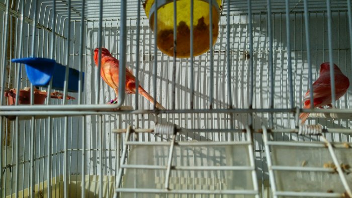Moi je vois 2 canaris colorés artificiellement.