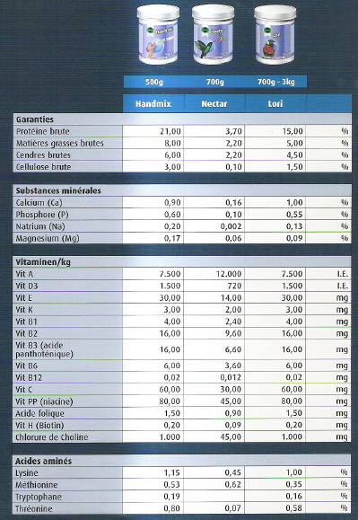 Ces dernières années,les aliments du commerce pour l'élevage à la main ont créer une véritable révolution dans l'élevage des oiseaux. Les éleveurs de Perroquets et de grandes espèces étaient principalement intéressés par ces produits,ceux-ci leur permettant d'élever plus facilement leurs progénitures auxquelles ils tiennent énormément. Cependant d'autres espèces,plus petites,ont aussi rapidemment appris à connaître ces aliments d'élevage à la main (E.A.M.). Ce n'est plus un secret,nombreux sont les oiseaux d'exposition qui sont élevés de cette manière. C'est ainsi que l'on obtient des oiseaux très apprivoisés et que l'on réussit à élever des jeunes à partir d'oeufs couvés par des parents adoptifs d'une toute autre famille. Auparavant,on utilisait toutes sortes de "composition maison". La valeur nutritive de ces "mélanges" était inconnue et généralement très déséquilibrée. Aujourd'hui,on peut utiliser des produits composés scientifiquement,entre autres,notre sujet : Orlux Handmix pour élever les jeunes oiseaux de manière simple. Pour préparer ce produit,il suffit de dissoudre la poudre dans de l'eau tiède dans les proportions indiquées. La plupart des Amateurs préfèrent donner la nourriture à l'aide d'une petite seringue dans le bec. On peut aussi utiliser une seringue équipée d'une sonde à jabot. Cette technique demande une certaine expérience de la part de l'éleveur. Aucun apport supplémentaire n'est nécessaire quand à la distribution de ce produit. En effet,tous les éléments nutritifs indispensables sont contenus dans la composition qui contient des lactobacilles et des enzymes de digestion. Les lactobacilles et les enzymes font partie naturellement de la flore du jabot des parents qui les transmettent lors du nourrissage. Leur présence dans l'aliment favorisera la digestion des oisillons . De plus le complément alimentaire au nid connaît un succés croissant,le soir,beaucoup d'éleveurs contrôlent tous les jeunes au nid. Ils vérifient si les jabots sont suffisamment remplis,pour les oisillons dont ce n'est pas le cas,ils leurs donnent l'aliment à l'aide d'une seringue. Ainsi,l'oisillon à assez d'énergie pour ne pas avoir faim durant la nuit et il peut donc palier au froid et,dès le mâtin,être en excellente condition pour réclamer de la nourriture à ses parents. Ces repas supplémentaires peuvent aussi être donnés plusieurs fois par jour,quand les parents ne nourrissent pas assez eux-mêmes ou quand le nombre de jeunes est trop élevé. Cette alimentation complémentaire permet également de nourrir plusieurs fois par jour les jeunes mal nourris,les oisillons les plus faibles,et ainsi rattraper leur retard de croissance face à leurs congénères. |
