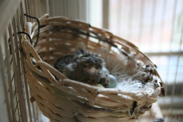 Je l'ai expliqué dans ma présentation, mais je le répète, pour plus de clarté... J'ai acheté un couple de canaris il y a environ un an.... mais je ne souhaite pas faire de la reproduction. Je voulais une paire pour le bonheur du pioupiou et l'éleveur m'a suggéré 2 mâles mais j'avais un doute sur une entente possible entre mâles et il ne semblait pas prêt à me vendre 2 femelles. Me voilà donc avec un couple. L'an dernier, la femelle a pondu 3 ou 4 fois... mais tous des oeufs clairs (ouf !). Si je retirais le nid, elle pondait dans la mangeoire ou par terre ! Cette année, elle a pondu 4 oeufs. Persuadée qu'elle était stérile, je n'y ai pas vraiment prêté attention, mais 1 oeuf a éclos... puis un second, 2 jours plus tard. Les autres oeufs n'ont pas éclos et sont toujours dans le nid. Aujourd'hui, je suis inquiète car l'aîné grandit/grossit deux fois plus vite que le plus jeune... il me semble que ce dernier commence même à faiblir. J'hésite à retirer le petit et à m'en occuper moi-même... ??? qu'en pensez-vous ? Est-ce raisonnable ? Il a une dizaine de jours. Merci de vos réponses ! |