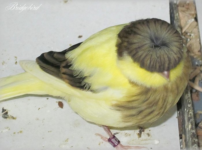 voilà le mâle en question corona panaché intensif trés bonne plume . sur cette photo l'oiseau n'est pas mis en valeur mais c'est pour montrer ce qu'est un panaché intensif pour yannick. |
